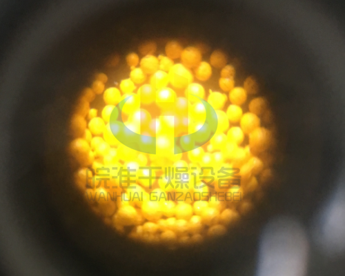 經(jīng)過前道工序處理后的料液進(jìn)入螺桿泵送至干燥塔底部的造粒霧化器。噴頭將料液均勻地霧化為微米霧滴群,進(jìn)入塔內(nèi)。常壓空氣進(jìn)入加熱系統(tǒng),被加熱至工藝所需的溫度,經(jīng)熱風(fēng)管道,熱風(fēng)蝸殼、熱風(fēng)分配器均勻進(jìn)入干燥塔上部,與霧滴群接觸后高溫固化,熱解成產(chǎn)品,干燥后的成品隨同尾氣經(jīng)出風(fēng)管送至旋風(fēng)分離器進(jìn)行氣固分離